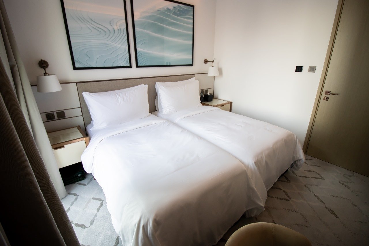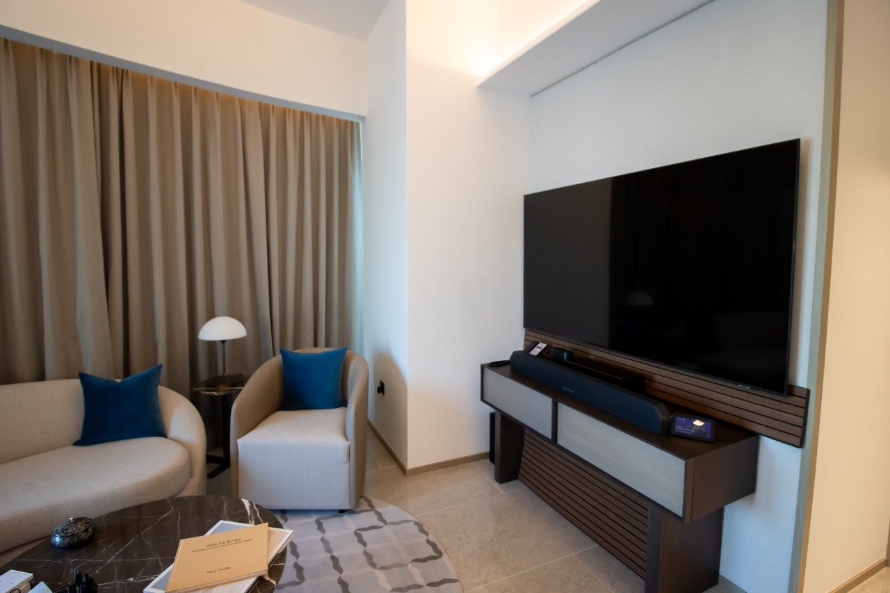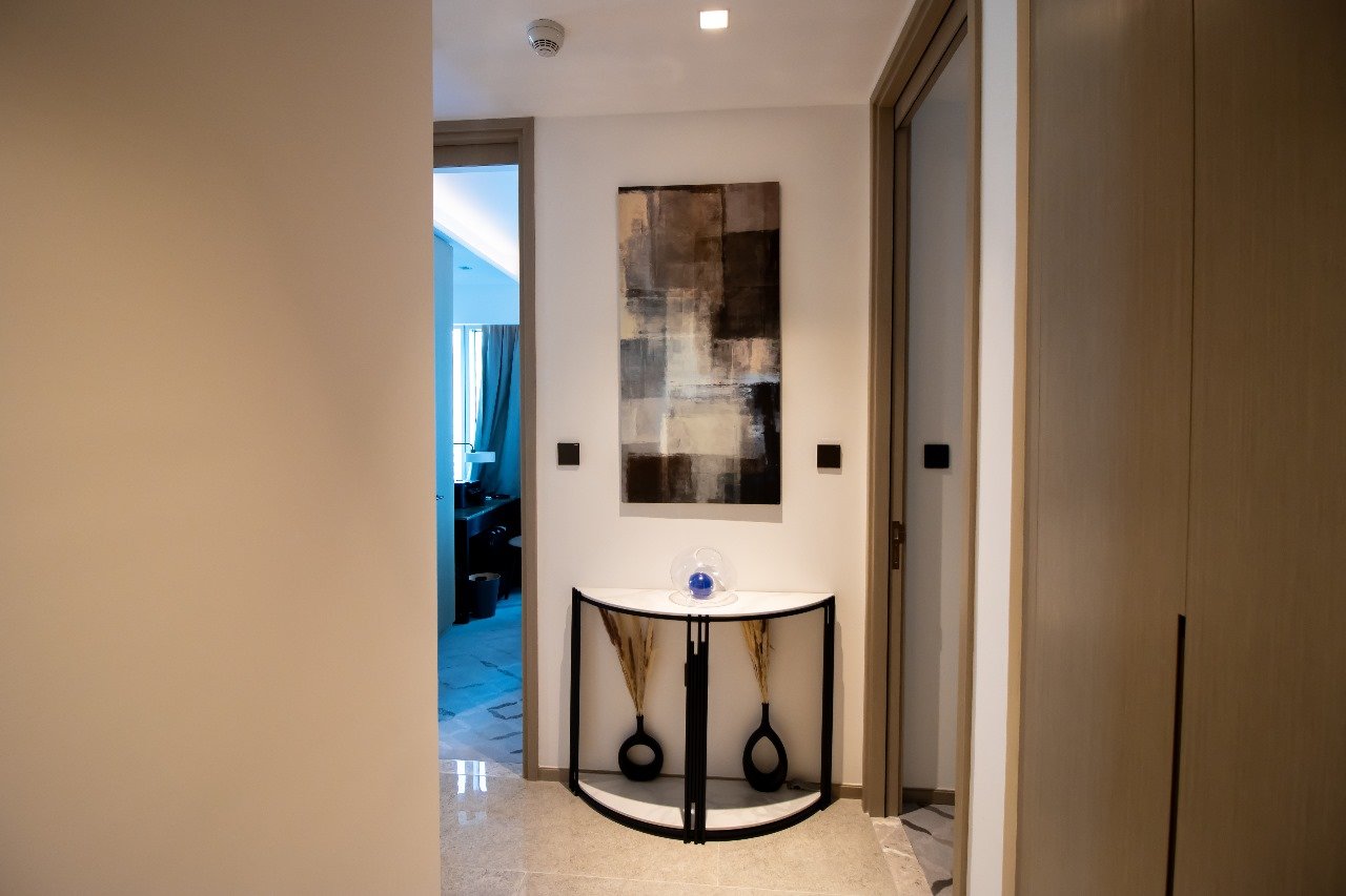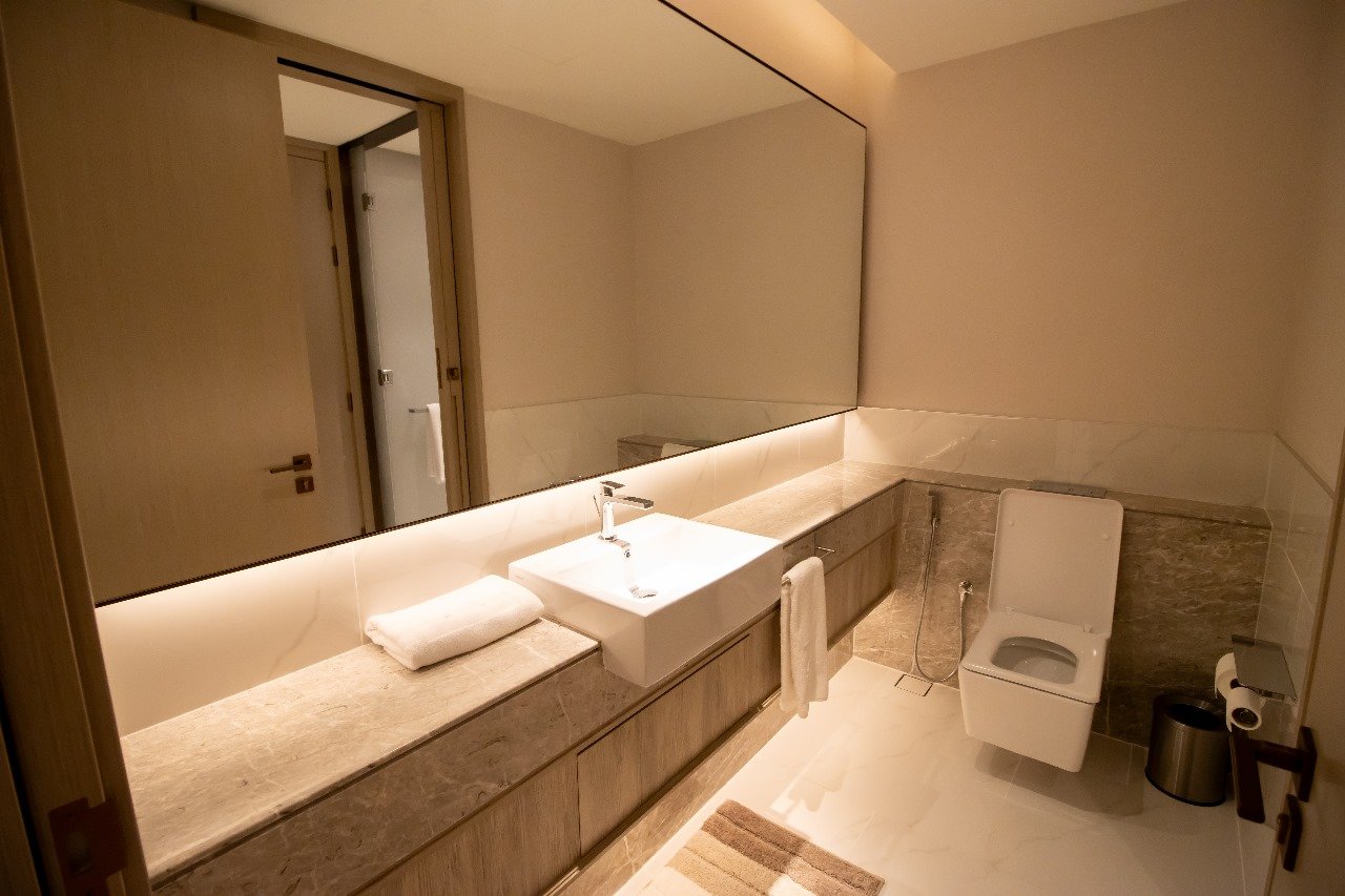Dual Master Suites: Two spacious bedrooms featuring king-sized plush bedding, walk-in wardrobes, and spa-like en-suite bathrooms finished in Italian marble and premium fixtures.